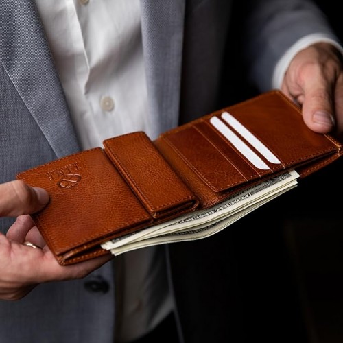 - ✔️ QUALITY THAT ENDURES: The wallet’s exterior is crafted from full-grain Italian cowhide leather, while the interior is lined with tear-resistant textile fabric. Wallet features impeccable finishing, seamlessly blending style with practicality.
