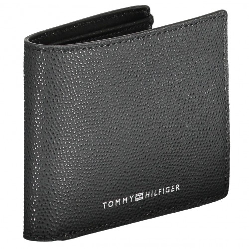 Discover sophistication with this elegant black bifold wallet that effortlessly carries your essentials while maintaining a slim profile. Perfectly crafted with a sharp eye for detail, it features double spaces for cards complemented by contrasting stitches, culminating in a distinguished accessory. A subtle, debossed logo lends a touch of class synonymous with the Tommy Hilfiger brand.