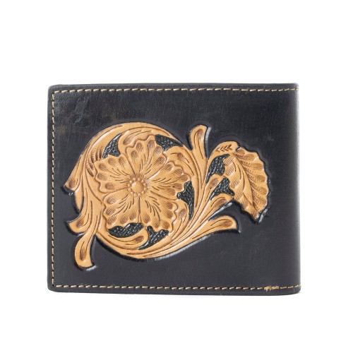 This man’s wallet has inspiring patterns that are the high attention of this black wallet with golden prints on the top of it.