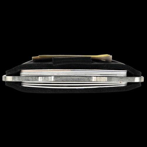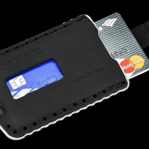 The Trayvax Ascent in Raw Stealth Black, is a tough, front pocket wallet that’s with you for the long haul. The Ascent boasts a single, stainless steel plate, notched on both sides for a comfortable grip. Top grain, oil-tanned leather is carefully hand-stitched through the steel plate and secured in place with brass rivets. Carry only what you need on your journey with this slim, dual-slot credit card holder. Over time, the leather will form around the contents of your wallet and develop a patina unique to your lifestyle.