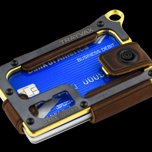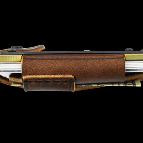 The Trayvax Contour in Brass Mississippi Mud, is our most refined leather wallet to date. The bottom plate is highly-precise CNC-machined stainless-steel, brass, or titanium. The top plate is PVD-coated for durability. Each plate is wrapped in top-grain oil-tanned leather, which will develop a patina as a constant reminder of your journey. Ideal for use as a front-pocket wallet , the sleek design and slim profile ensures a compact and lightweight everyday carry.