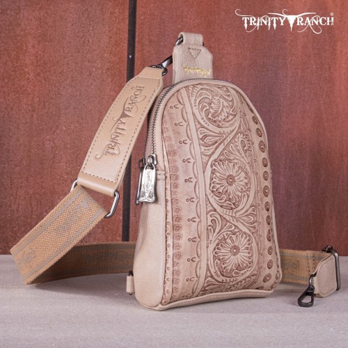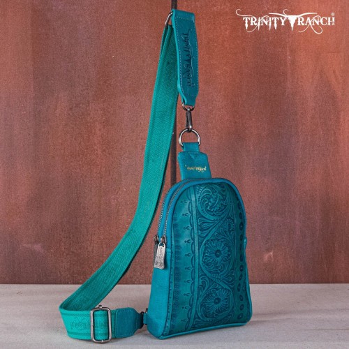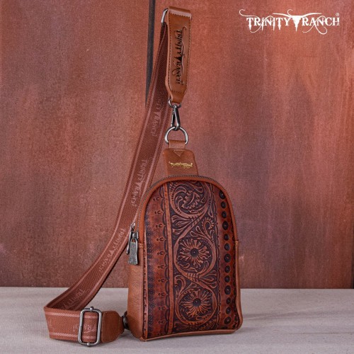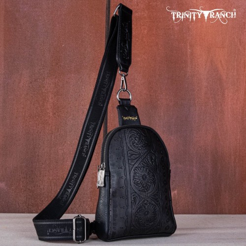 Made of PU leather, this western sling crossbody has: