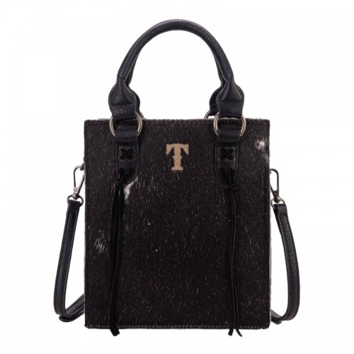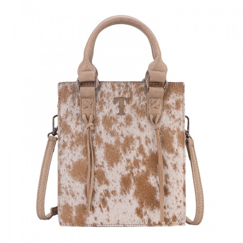 Trinity Ranch line by Montana West, this partial genuine leather tote has: