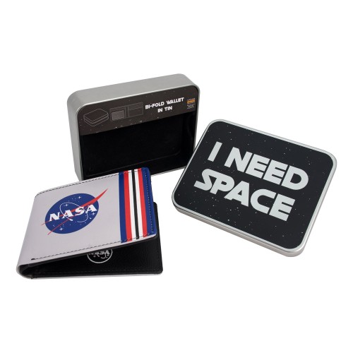 NASA LOGO Bifold Wallet in a Decorative Tin Case Multi ,Unisex