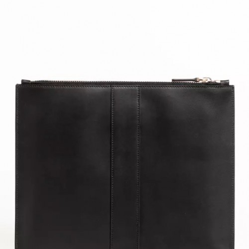 Trussardi Elegant Black Leather Pocket Clutch Bag