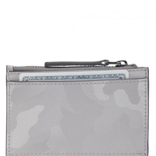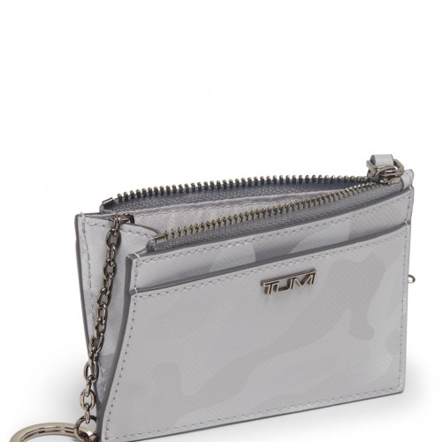 A compact style that easily slips into pockets or larger bags, this slim card case features a secure zip closure and a convenient key chain.