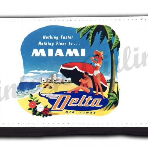 This wallet features the image of a 1930’s bag sticker with a DC-3 used by TWA.