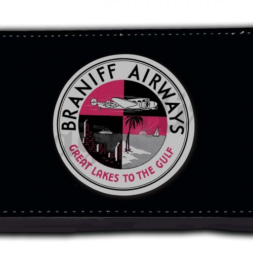 This wallet features the image of a bag sticker showing the Lockheed Constellation flown by TWA.