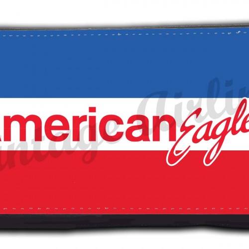 This wallet features a reproduction of a painting by the artist Rick Broome of a US Air DC9 inflight.