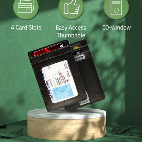This Cardholder has 4 credit card slots, 1 ID Window, 1 pocket, and 1 cash compartment. The thumbhole is designed with a special finger hole design, giving easy access to your favorite card