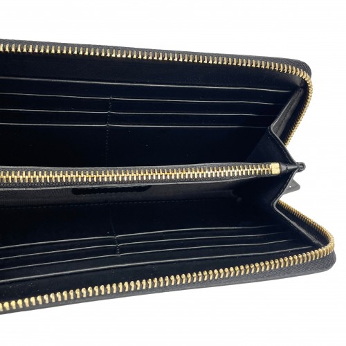 Versace Black Leather Continental Clutch Zip Wallet
