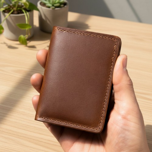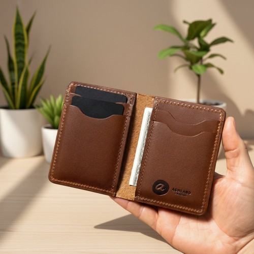 Vertical Bugs Moran is a minimalist leather wallet that can be carried in your front pocket or back pocket. Designed to be as thin as possible. Made in the USA from famous Horween Leather.