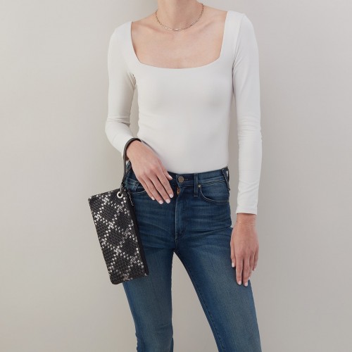 Vida Wristlet In Woven Leather – Black Metallic Woven