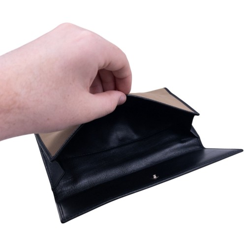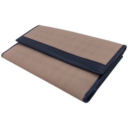 - Other info: Beige colour, black contrast colour, nova check pattern, leather binding and lining, embossed detail, 4×7.5in measurement