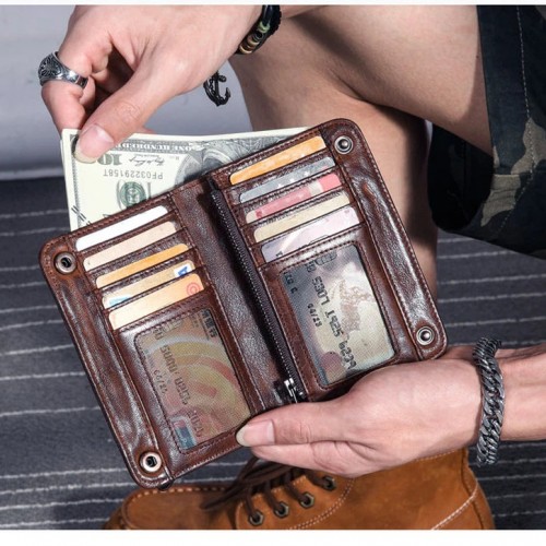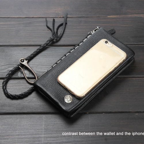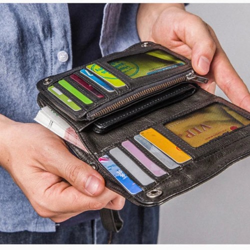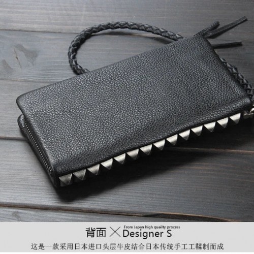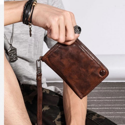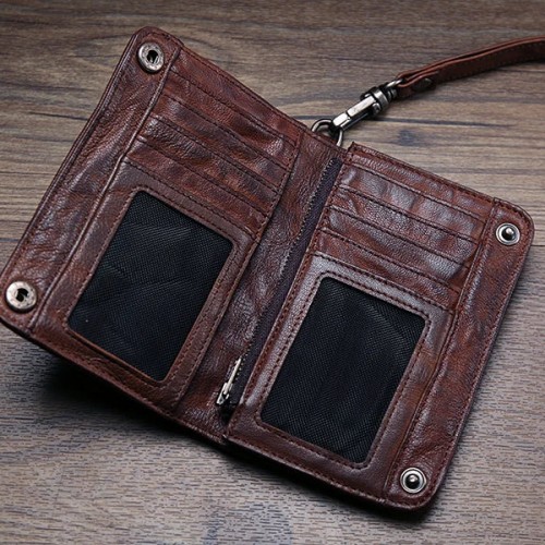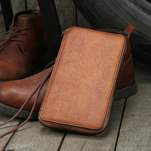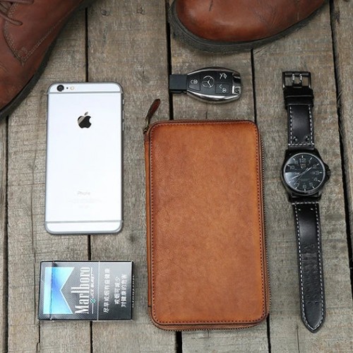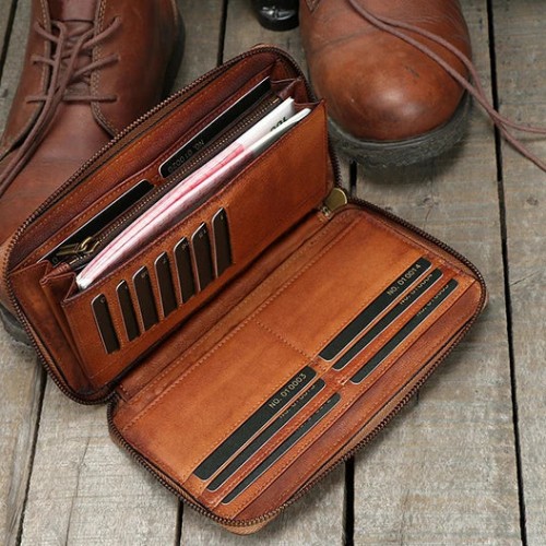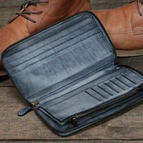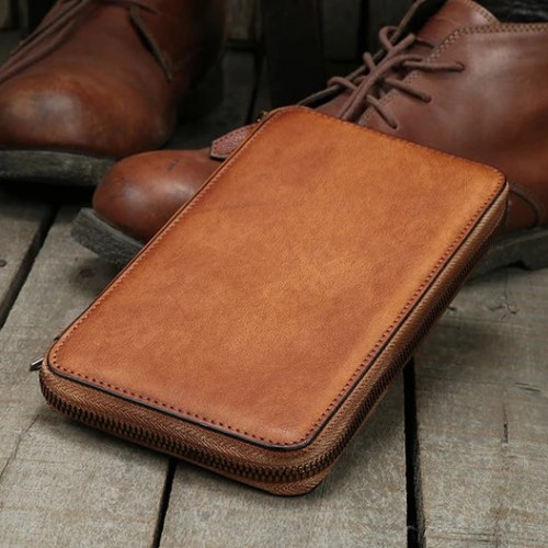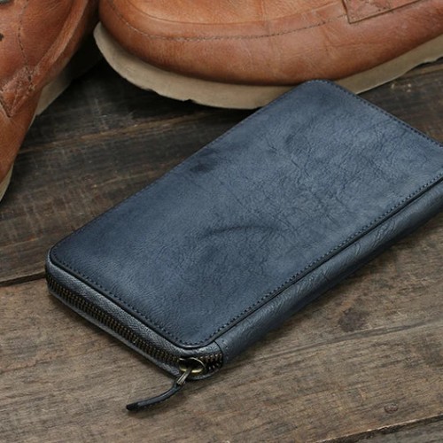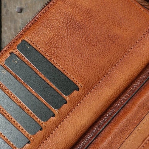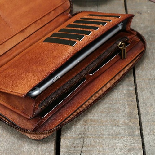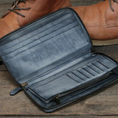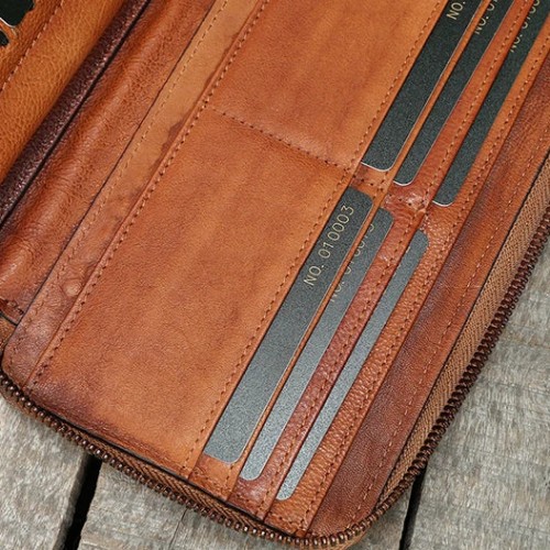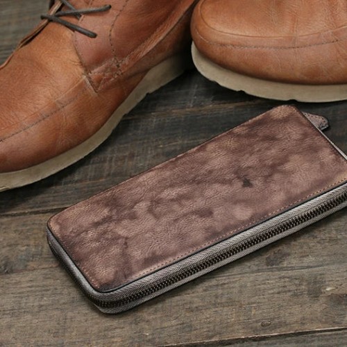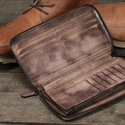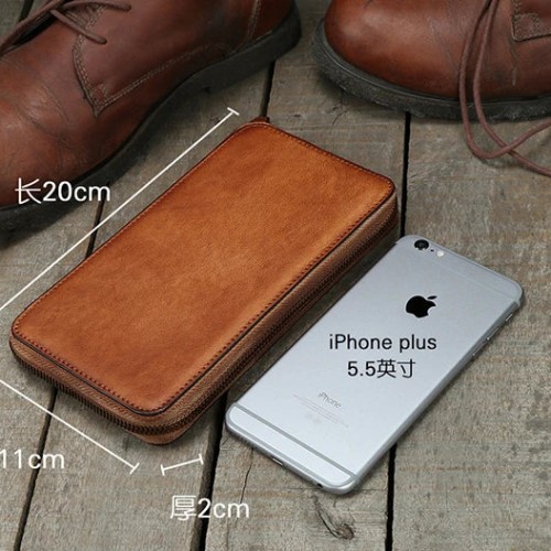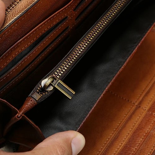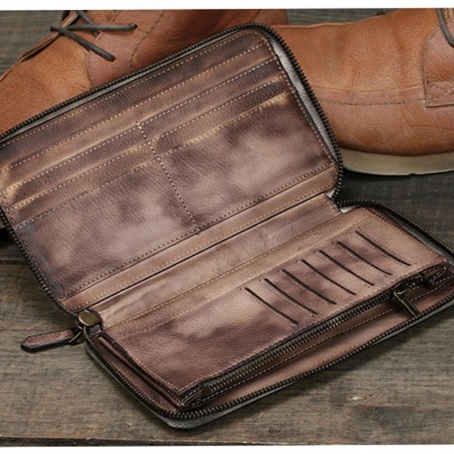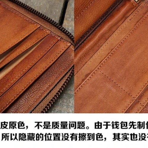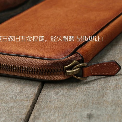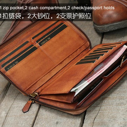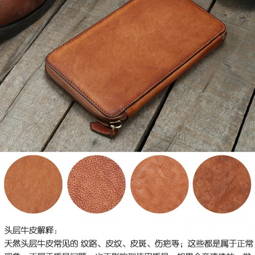 Vintage Genuine leather wallet Men leather long wallet men purse clutch bag male money clips zip around money bag card holder