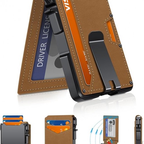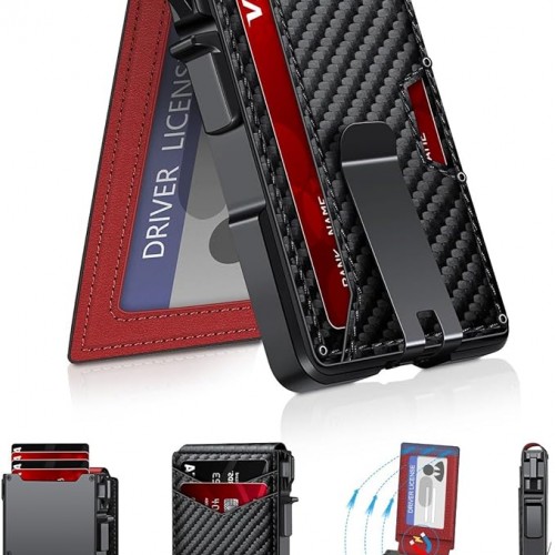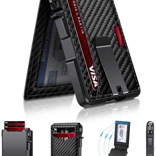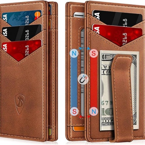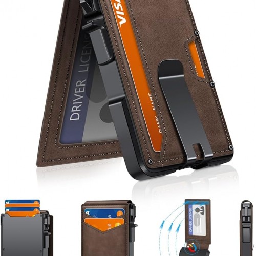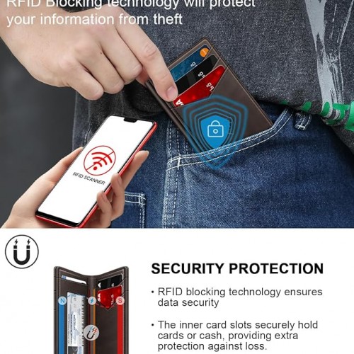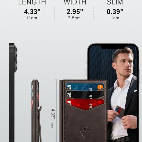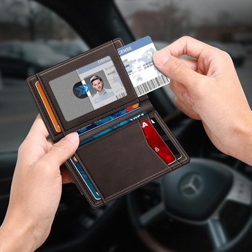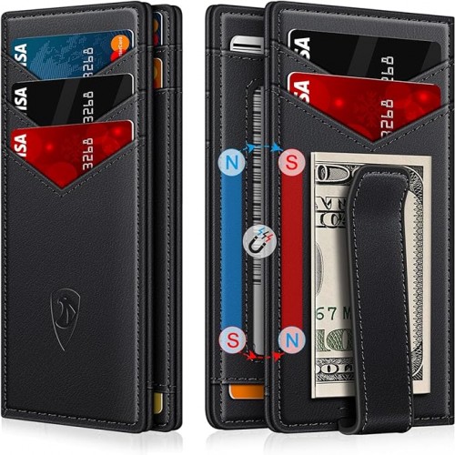 Wallet for Men Slim Leather Wallets for 12-15 Cards, Minimalist Thin RFID Blocking Card Holder with Money Clip & ID Window, Small Bifold Front Pocket Wallet, Gifts for Men