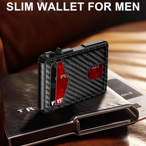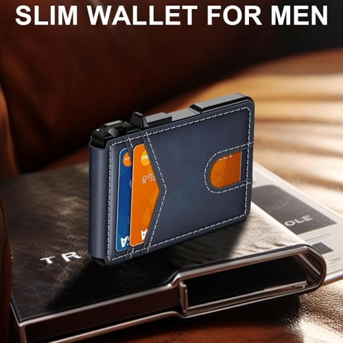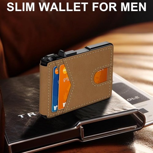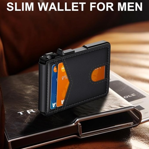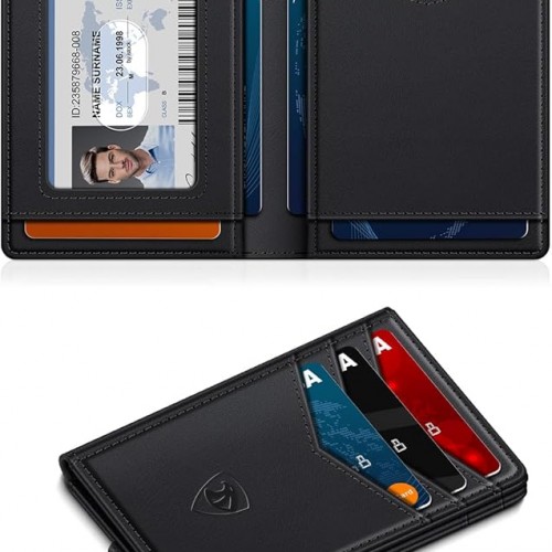 Wallet for Men Slim Leather Wallets for 12-15 Cards, Minimalist Thin RFID Blocking Card Holder with Money Clip & ID Window, Small Bifold Front Pocket Wallet, Gifts for Men