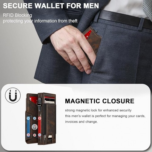 - TRIPLE SECURITY GUARANTEES: Card case with lock design avoids dropping the cards, leather flap features strong magnets for secure closure, and cash slot is safer than money clips, preventing cards or cash from slipping out.