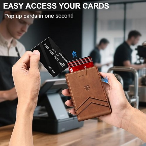 Wallet for Men Wallet with Slim Pop Up Card Holder for 12-14 Cards, RFID Blocking Bifold Minimalist Smart Wallet, Credit Card Holder with ID Window & Cash Slot, Compact Metal Card Case, Gifts for Men