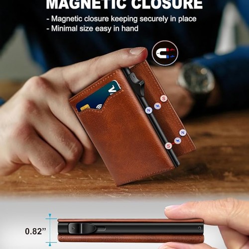 Wallet for Men,with Cash Pocket 2 ID Window 9-13 Cards,Metal Case Smart Slim Pop Up Credit Card Holder Flip with Magnetic Closure RFID Blocking Trifold wallet with Gift Box