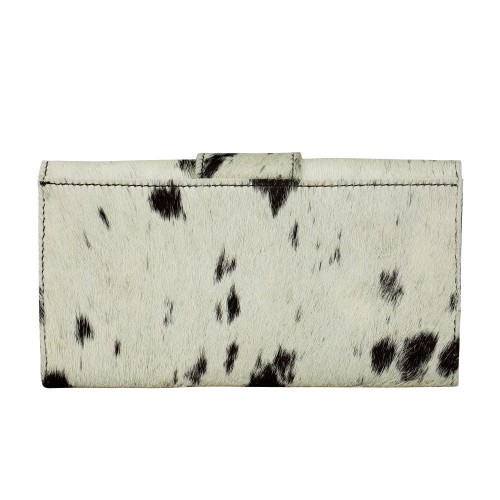 This black and white wallet comes with a front flap design that snaps securely shut and ensures safe storage. It will also provide protection against RFID skimming.