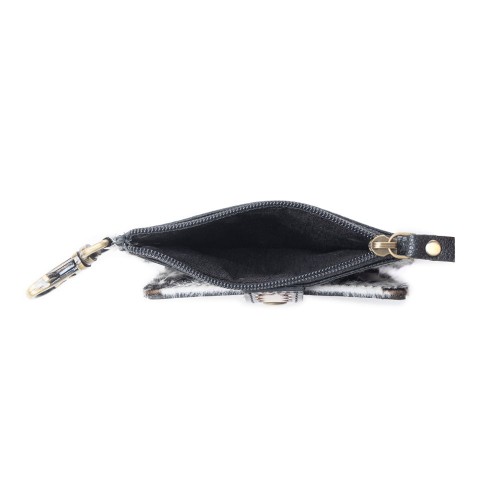 A treasure as unique as desert dawn, this compact wallet pairs turquoise tooled leather with striking hair-on hide detailing. Hand-carved floral patterns dance across premium leather, while antique brass hardware and multiple compartments blend Western artistry with everyday practicality. Perfect for the free-spirited cowgirl on the go. Includes a convenient clasp for securing your wallet.