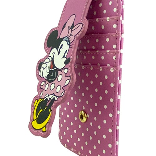 Womens Disney Minnie Mouse Polka Dot Card Holder Wallet Button Snap Closure