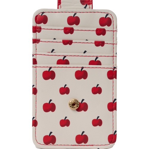 - This woman’s card wallet features an all-over print of poisoned apples.