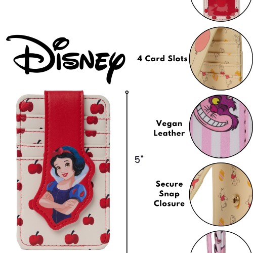 This card holder is perfect for everyday usage or even a trip to Disneyland! It’s officially licensed and features an all over print design of Winnie the Pooh! A fold over flap secured with a snap button closure to ensure your cards stay in place! The design features a cut out of Winnie the Pooh on the fold over flap, it also has an ID slot with an ID window on the back of it to ensure easy access to your ID whenever you should need it! Measuring at 5 inches tall and 3 inches wide it fits in most pockets and bags so you can take it everywhere with you!