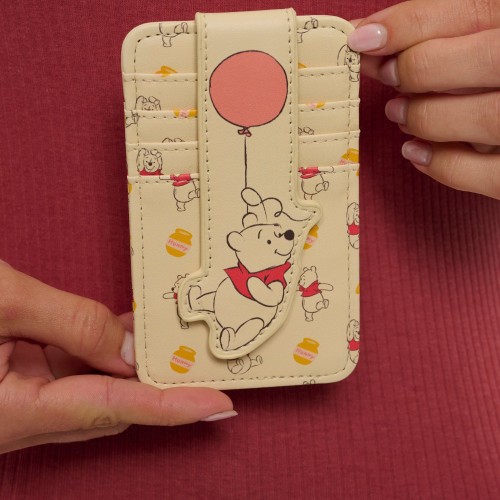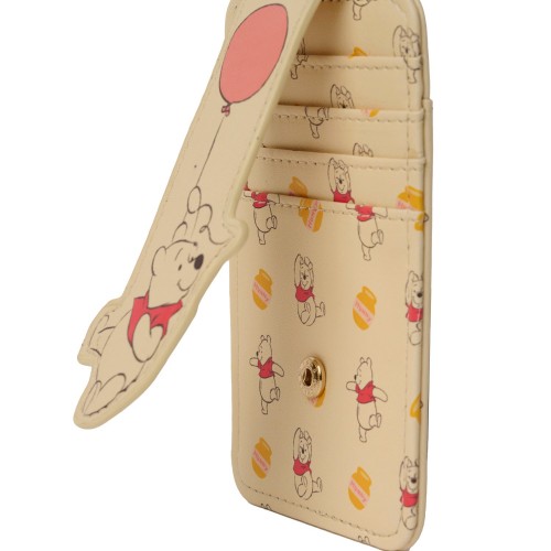 - Snap closure featuring Winnie the Pooh holding a balloon secures cards from slipping out.