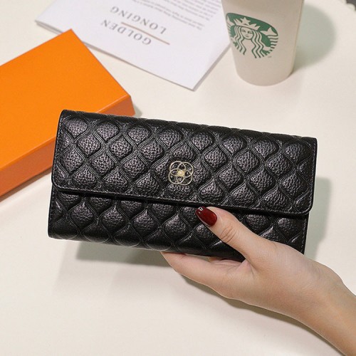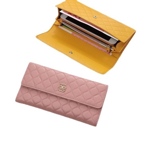 Women’s First Layer Cowhide Mid-length Fashion Rhombus Ladies Wallets