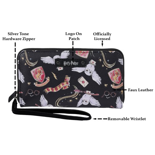 - Women’s Harry Potter Icons Black Zip Around Wallet All-Over Print Wristlet.