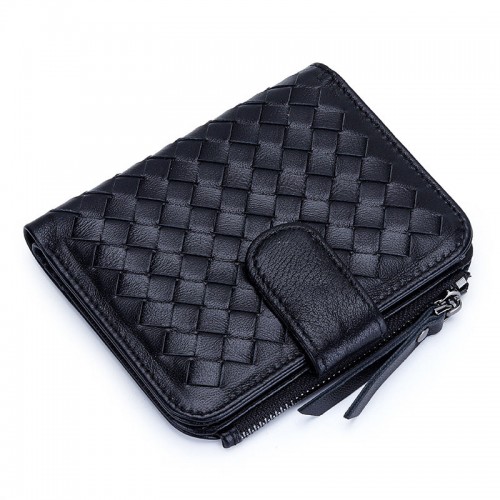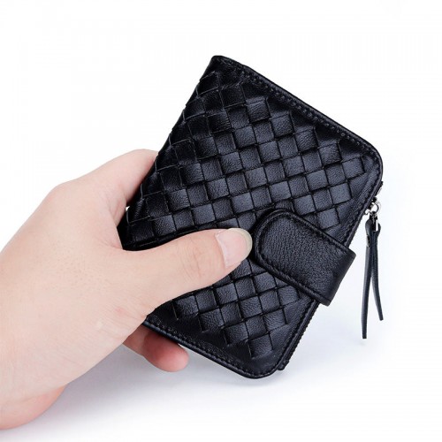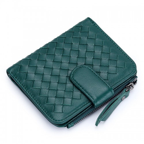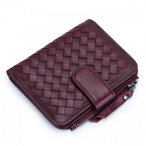 Women’s Short Sheepskin Woven Classic Half Fold Ladies Wallets