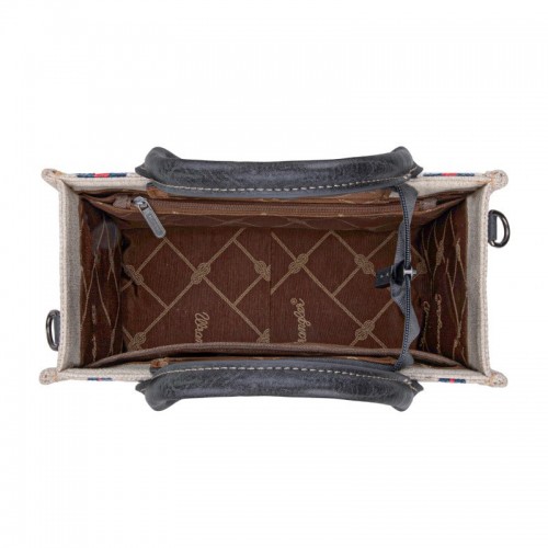 Made of canvas and PU leather trimmed, this tote/crossbody has: