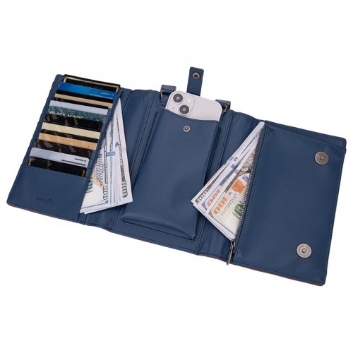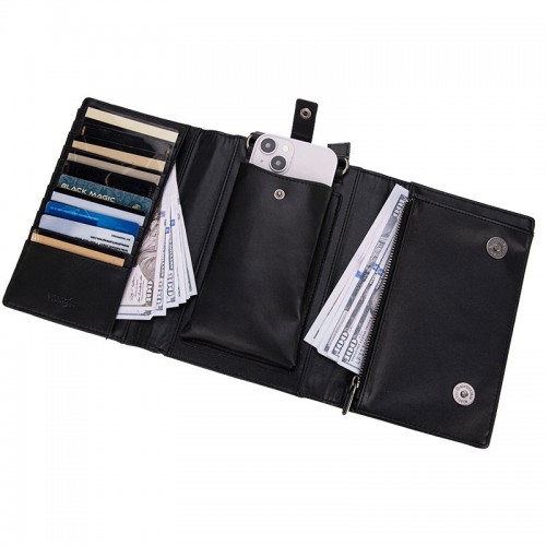 - Interior features multiple card slots,a Magnetic buckle pocket and bill compartments