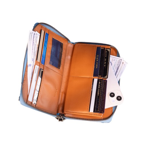 - Single removable strap to convert the wallet into a wristlet.