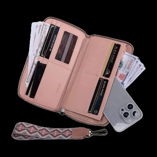 - Single removable strap to convert the wallet into a wristlet.
