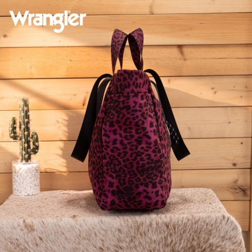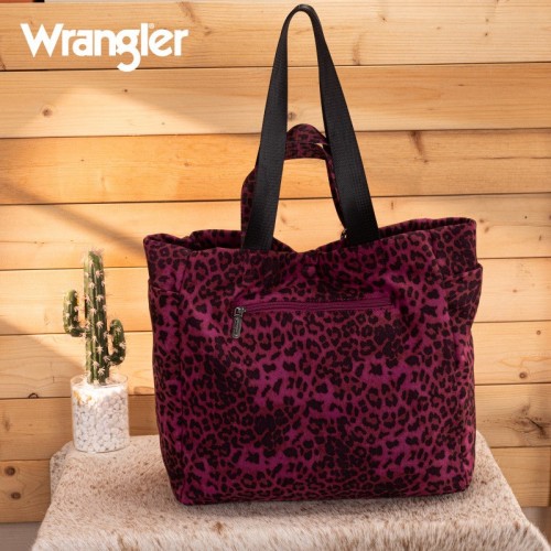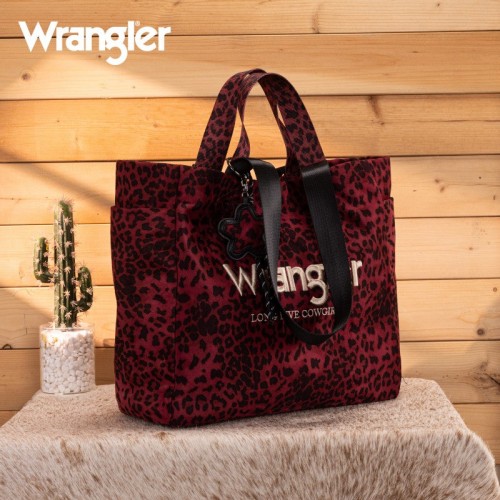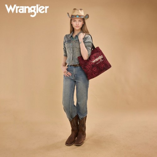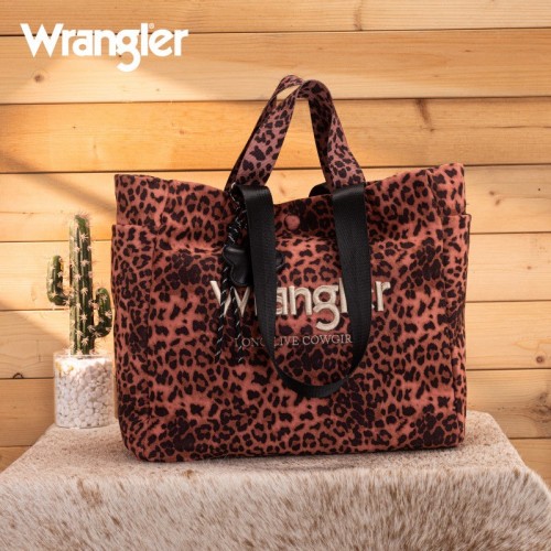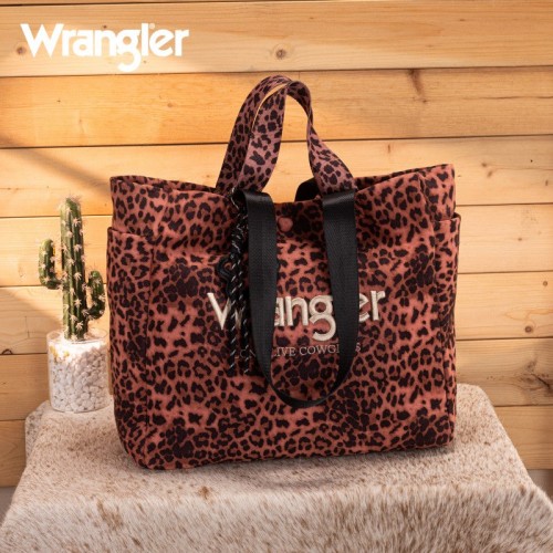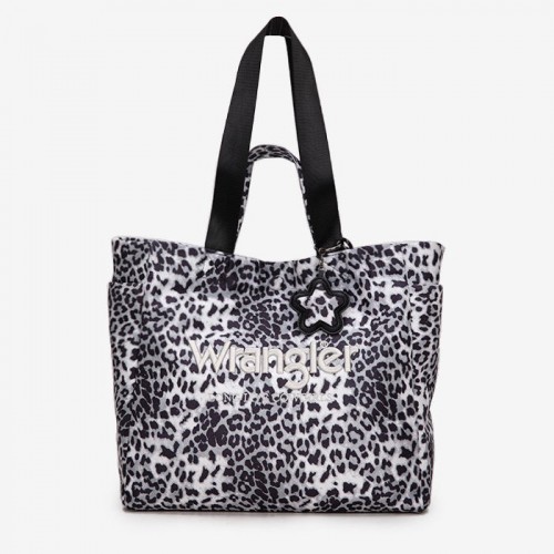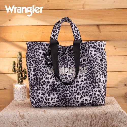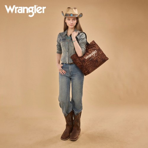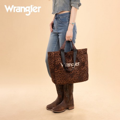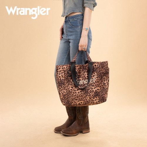 The Wrangler leopard print tote bag combines bold Western style with everyday functionality. Designed with a striking branded logo, it features a durable canvas construction and a roomy interior.