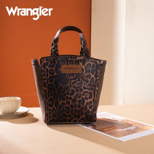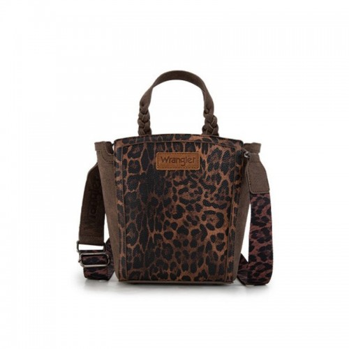 This Wrangler crossbody showcases a bold leopard print and braided top handle, perfect for carrying your wallet, keys, and daily essentials. The detachable strap offers versatile carrying, making this small leopard purse a stylish blend of Western flair and everyday practicality