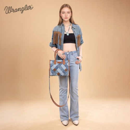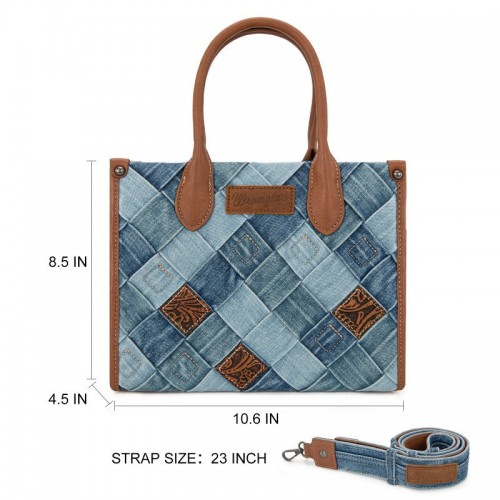 - Detachable denim crossbody strap included