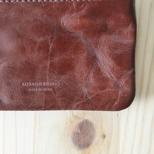 Made of vegetable tanned and wrinkled saddle leather by a tanner in Himeji since 1905. Made-in-Japan YKK solid brass zipper.