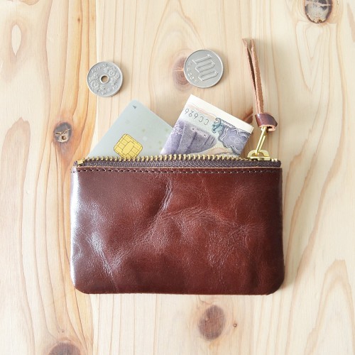 Zippered wallet handmade in Tokyo. Holds up to 11 cards. Smart style for carrying cards, folded bills and coins all in one.