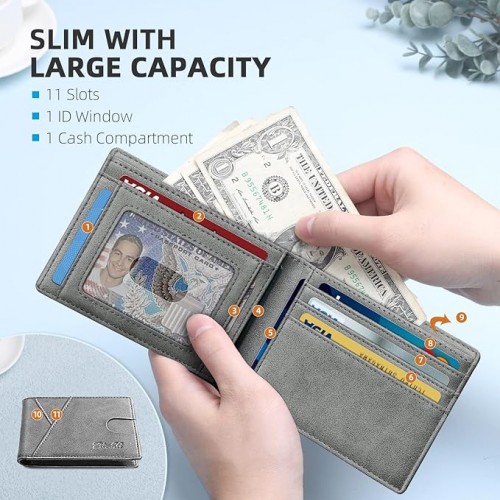 - Ultra-Slim Front Pocket Design -This slim minimalist card wallet,only 0.3-inch thickness fits discreetly in front pockets,Holds 11 cards and 20 bills without bulk
