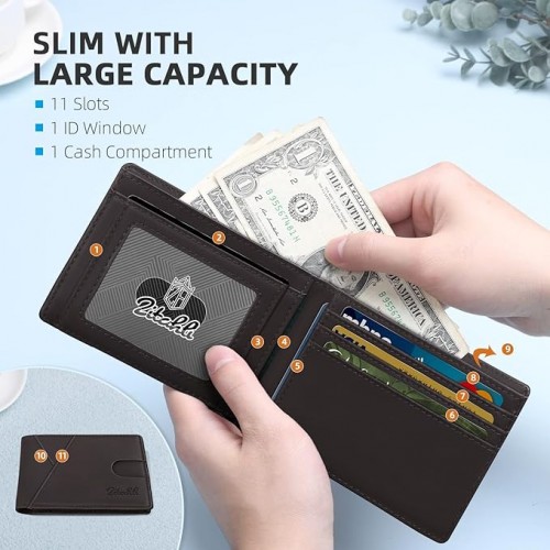 Zitahli Wallet for Men Slim 11 Credit Card Holder RFID Blocking Small Men’s Wallet Bifold Minimalist Front Pocket With Mens Gifts Box