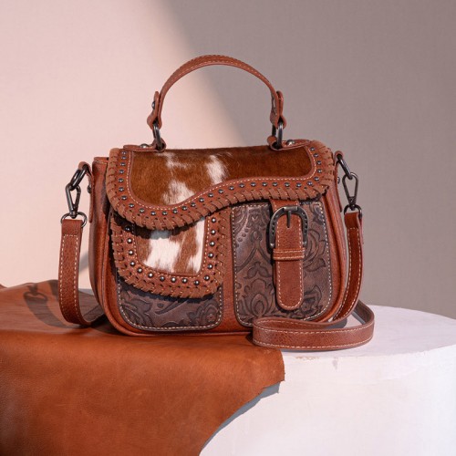 Trinity Ranch Hair-On Cowhide Saddle Shape Crossbody Satchel