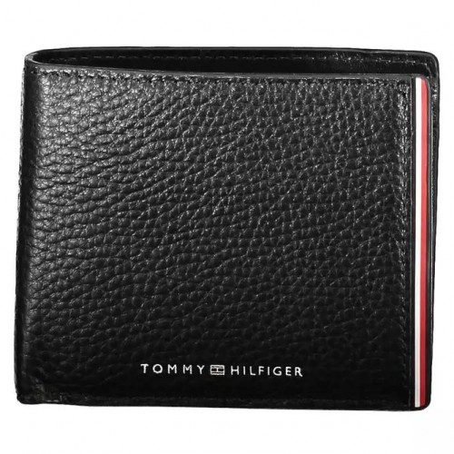 Tommy Hilfiger Sleek Black Leather Wallet with Contrasting Accents