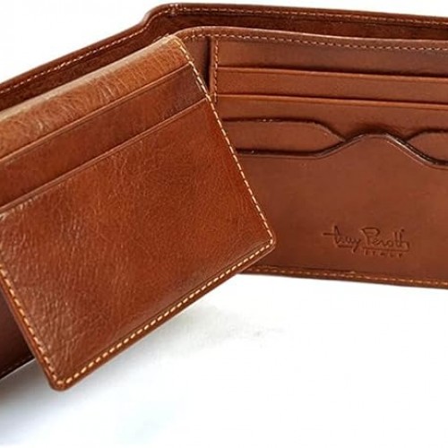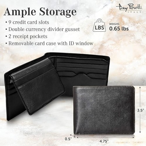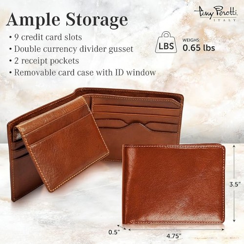 Tony Perotti Men’s Italian Leather Slim Bifold Wallet With ID Window Holder, Card Holders, Cash & Receipt Pockets