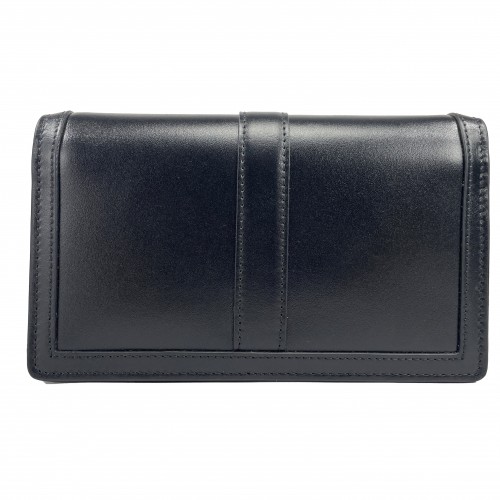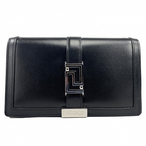 Versace Greca Black Silver Leather Chain Crossbody Wallet