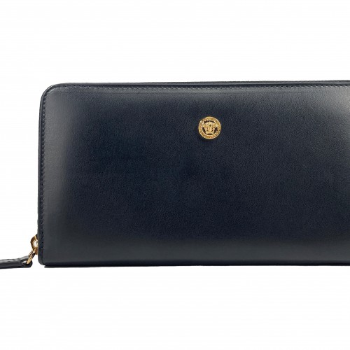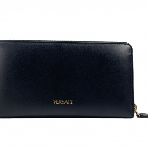 Versace Black Leather Continental Clutch Zip Wallet