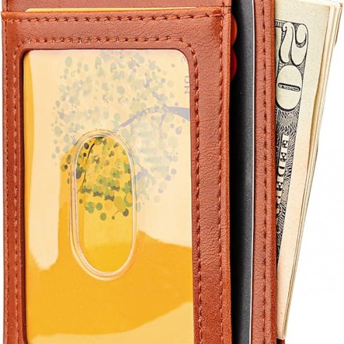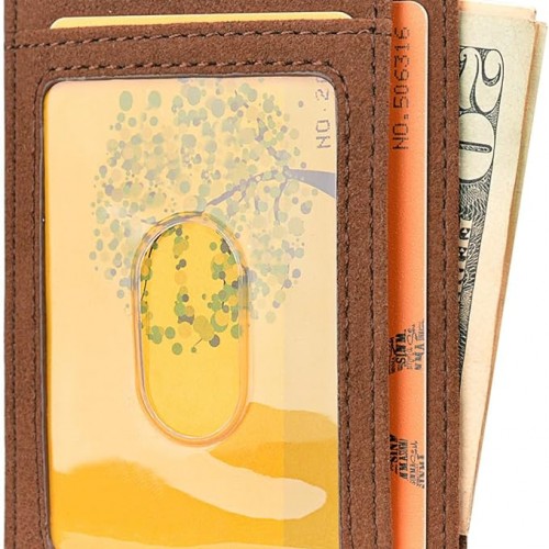 Buffway Slim Minimalist Front Pocket RFID Blocking Leather Wallets for Men and Women – Alaska Brown